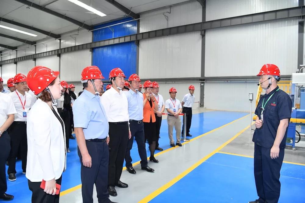 儀式結束后,現場嘉賓在工作人員的帶領下來到杉杉科技包頭生產車間,近距離觀摩包頭一體化基地的生產狀況。